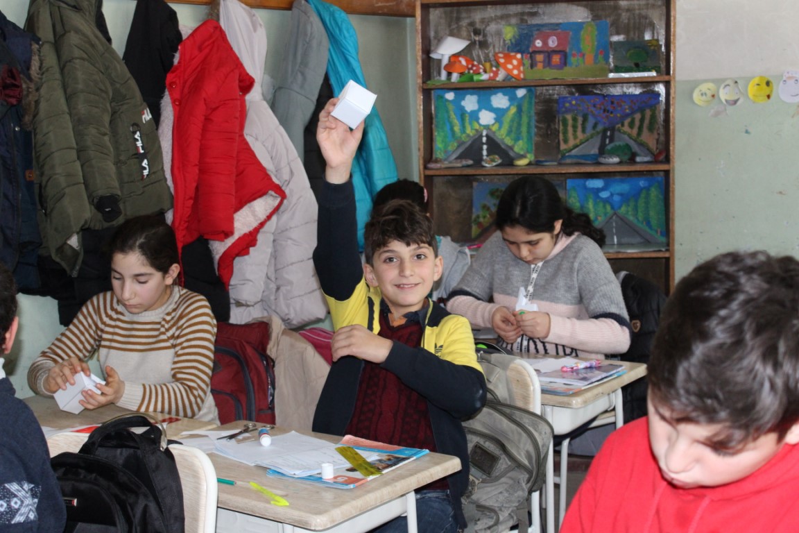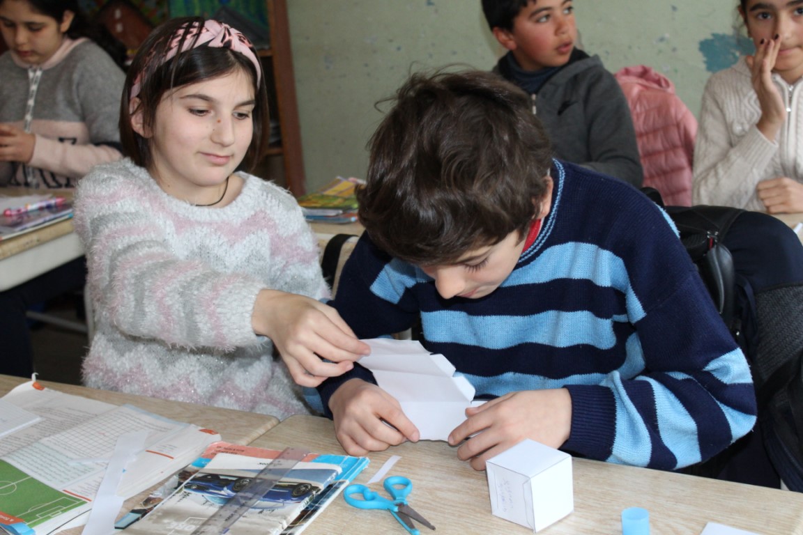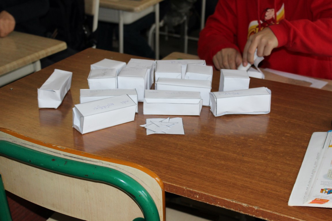 გაკვეთილის მიზანი იყო მოსწავლეებმა დაადგინონ მიმართებები ბრტყელ და სივრცულ ფიგურებს შორის და ფიგურის ელემენტებს შორის, მათი გამოყენებით გამოითვალონ მართკუთხა პარალელეპიპედის სრული ზედაპირის ფართობი, ააგონ მოდელი.