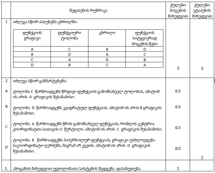 - მოსწავლეები შესძლებენ ფუნქციების დახარისხებას;