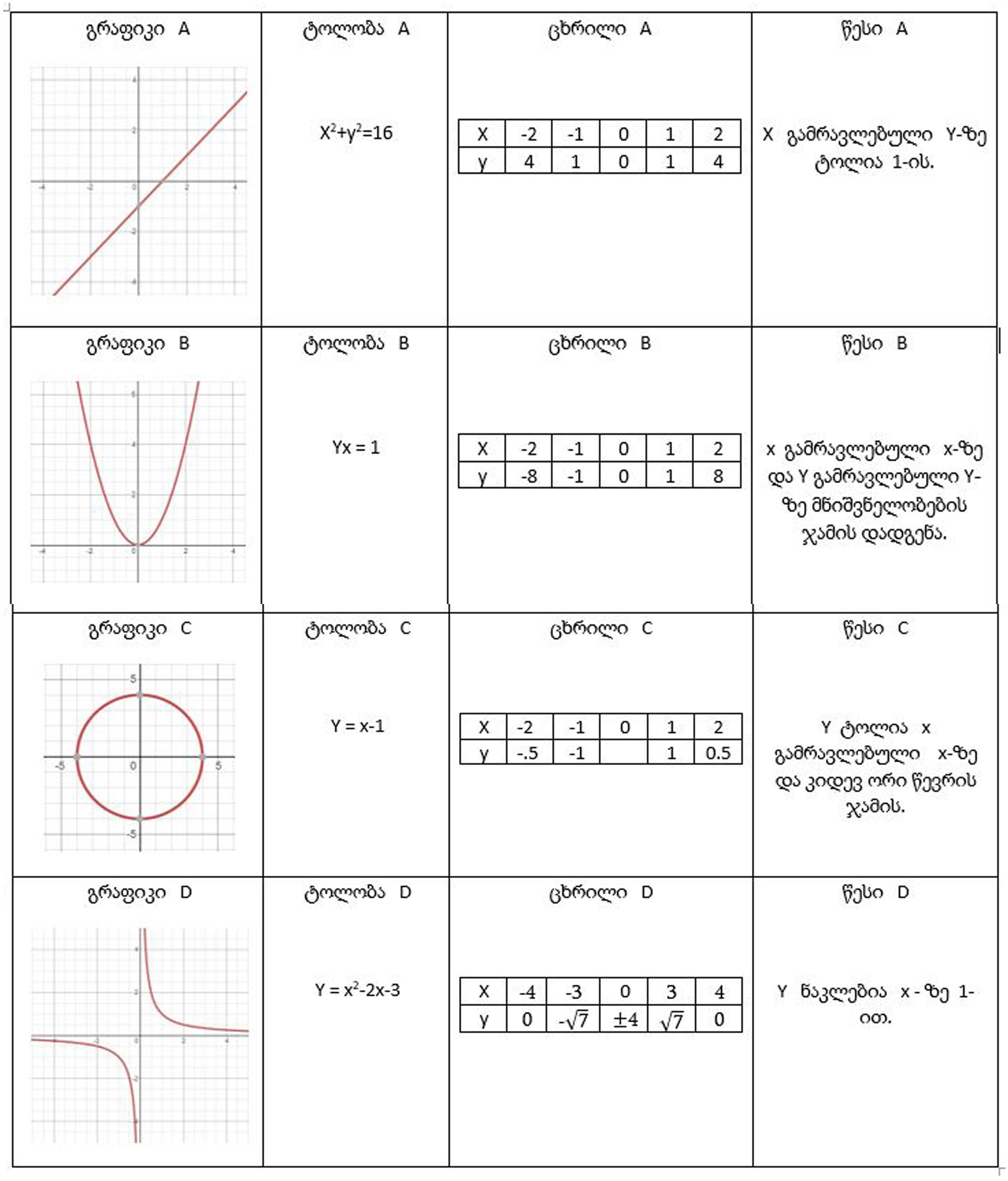 - შესძლებენ ააგონ უტოლობათა სისტემების გრაფიკები და გადაამოწმონ, https://desmos.com - მობილურ ტელეფონზე დაყენებული APP-ის მეშვეობით, მისი სისწორე;